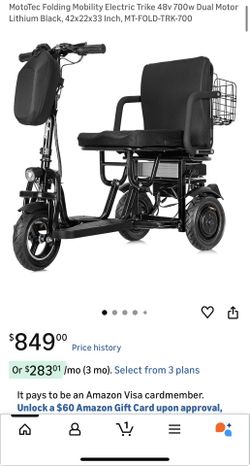 MotoTec Folding Mobility Electric Trike 48v 700w Dual Motor Lithium Black, 42x22x33 Inch, MT-FOLD-TRK-700$350Diamond Bar, CA