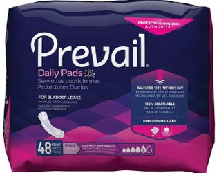 Prevail Daily Incontinent Pad 11" L Regular Length Maximum 48 Ct$50El Monte, CA
