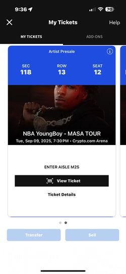 MASA YB TICKETS SECTION 118$0Santa Ana, CA