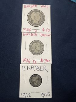 Barber Half , quarter and dime 90% silver (3pieces )$85Henderson, NV
