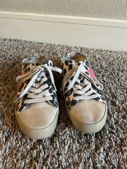Black tan and white Polka Leopard Distressed open back sneaker size 81/2$48Riverside, MO