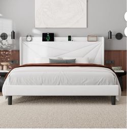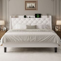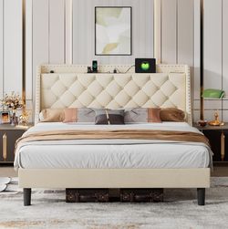 King Bed Frame with 16" Deluxe Wingback & Charging Station, Upholstered Platform Bed with Button Tufted Storage Headboard,White$160Rancho Cucamonga, CA