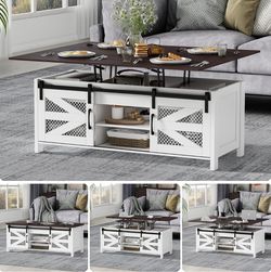 47.2" Lift Top Coffee Table, 4 in 1 Farmhouse Coffee Table with Sliding Barn Doors, Coffee Tables for Living Room, Dining Room (White)$100Rancho Cucamonga, CA