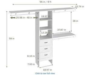 Closet System with Drawers, 5-8FT Closet Organizer Systems with Expandable Hanging Rods, 96" Closet Shelving Systems for Walk in Closets, Heavy Duty W$100Rancho Cucamonga, CA