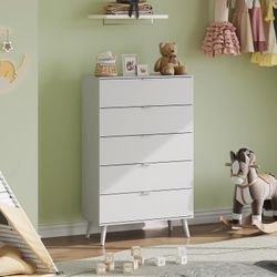 5 Drawer Dresser for Bedroom, Tall Wooden Dresser, White Dressers Storage Organizer with Sturdy Metal Handle, Chest of Drawers for Living Room, Hallw$150Rancho Cucamonga, CA