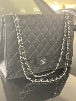 CHANEL Classic Red Interior Flap Bag Maxi Black Caviar Leather Silver Hardware$2,600Isafa, NV