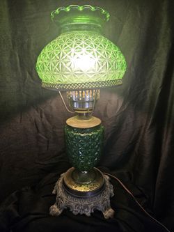 Vintage Mid-Century Emerald Green Quilted Glass Parlor Lamp - Ornate Metal Base$100Carlsbad, CA