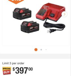 Milwaukee 18-Volt Lithium-Ion XC Starter Kit with Two 5.0Ah Batteries and Charger$280Phoenix, AZ