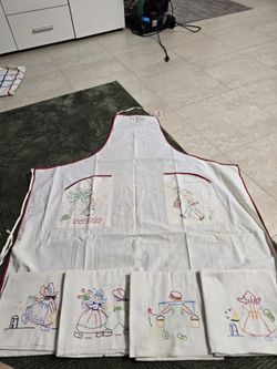 Vintage Linen Towels Embroidered Lot + Apron Handmade Folk Art$15Halndle Bch, FL