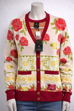 Disney Princess Belle Cardigan Roses Knit Sweater S/M New Tags$70Halndle Bch, FL