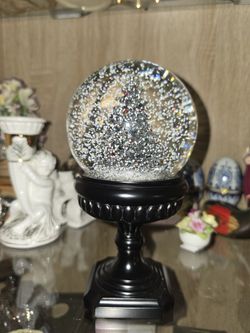 Christmas Snow Globe Silver Tree Black Pedestal Holiday Decor$10Halndle Bch, FL