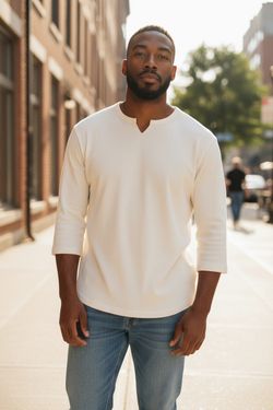 Cabin Creek Mens XL Tall Waffle Knit Cream 3/4 Sleeve Henley Top$18Halndle Bch, FL
