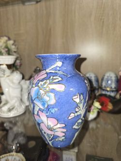 Vintage Chinese Blue Floral Vase Hand Painted Enamel Cloisonne Style$15Halndle Bch, FL