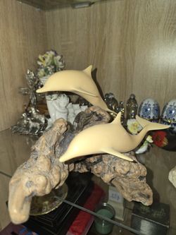 Vintage John Perry Dolphin Sculpture on Driftwood Style Base$20Halndle Bch, FL