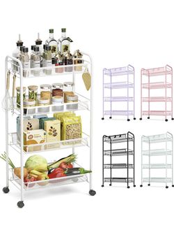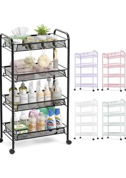TOOLF 4-Tier Rolling Cart, Metal Utility Cart with 3 Hooks, Easy Assemble Mobile Storage Trolley On Wheels, Metal Shelving Units Kitchen Bathroom Laun$25Bellflower, CA