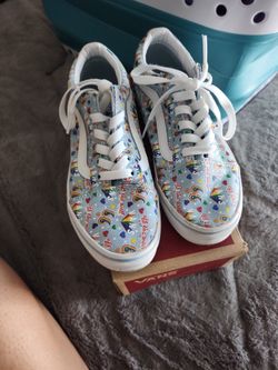 Vans Girls Youth Old Skool Light Blue Grey W/Rainbow Sneakers