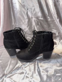 Black lace-up ankle boots with chunky heels are a type of combat-style or urban footwear.$15Beaverton, OR