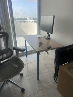 Impecable Working Wood Table With Blue Table Cabinet $70Miami Beach, FL