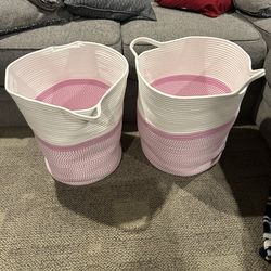 2 Pink & White Storage/Laundry Baskets$25Raritan, NJ
