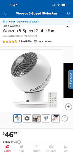 Woozoo 5-Speed Globe Fan with Remote$29Upland, CA