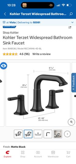 Kohler Terzet Matte Black Bathroom Faucet | New $99Claremont, CA