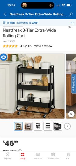 Neatfreak 3-Tier Extra Wide Rolling Cart – Brand New Black$29Claremont, CA