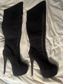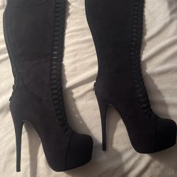 Black Suede thigh High , Brand New Never Worn, Zipper Back Laced Design Front 6 Inch Boots$50Cantonment, FL