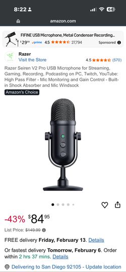 Razer Siren V2 Pro Mic With Arm$65San Diego, CA