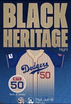 Los Angeles Dodgers Black Heritage Night Jersey SGA 6/19/25 BETTS$20Covina, CA