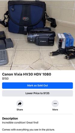 Canon Vixia Hv30 HDV 1080i Camcorder$150Oroville, CA