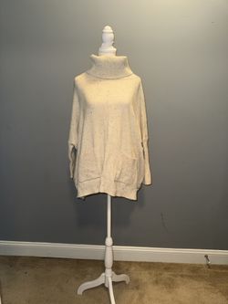 Loft Flecked Confetti Pocket Poncho Cream Turtleneck Sweater - Women’s Small$18Stedman, NC