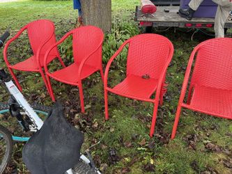 Red Crosley Palm Harbor outdoor wicker stackable chair. $50Brown Deer, WI