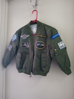 Boeing Flight Jacket Boys 7 L Green Bomber Patches Flying World Map Authentic Size 7 New$40Sacramento, CA