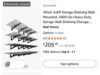4Pack 2x6ft Garage Shelving Wall Mounted, 2400 Lbs Heavy Duty Garage Wall Shelving Storage Shelves for Basement, Laundry Room, Heavy Duty Floating She$80Salinas, CA