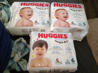 3 packs of Huggies snug and dry,unopened.1 pk size 6,2 pks size 5$20Pompano Beach, FL