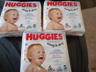 Huggies Snug N Dry Size 5. Unopened Packages. 75 Diapers In Total$25Pompano Beach, FL
