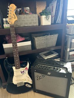 Squire black electric guitar with fender mustang amp$70Sacramento, CA