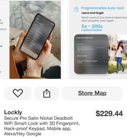 Lockly Secure Pro Satin Nickel Deadbolt WiFi Smart Lock with 3D Fingerprint, Hack-proof Keypad, Mobile app, Alexa/Hey Google$165Mesa, AZ