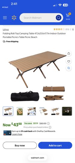 Folding Roll-Top Camping Table 47.2x23.6x17.7in Indoor Outdoor Portable Picnics Table Picnic Beach$30Deerfield Beach, FL