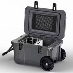 Hooure 27.5 in. 55-Quart Cooler with Wheels, Warming Drawer, Leak-Proof Outdoor Insulated Cooler with Handle, Cup Holders, Grey $139Richardson, TX
