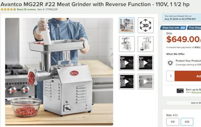 Avantco MG22R #22 Commercial Meat Grinder (Like New, 1.5 HP, Used 15–20 Times)$550Lilburn, GA