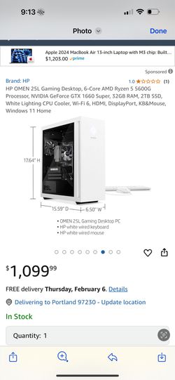 HP OMEN 25L Gaming Desktop, 6-Core AMD Ryzen 5 5600G Processor, NVIDIA GeForce GTX 1660 Super, 32GB RAM, 2TB SSD, White Lighting CPU Cooler, Wi-Fi 6, $800Portland, OR