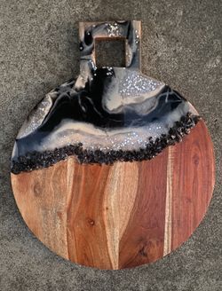 Large round resin wooden charcuterie board black and silver, geode$65San Diego, CA