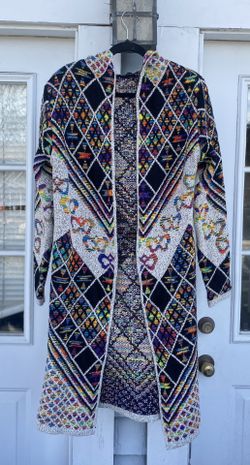 On Blue Aztec Long Hooded Cardigan Sweater Western Boho Eyelash Yarn$70San Diego, CA