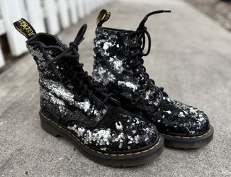 Dr. Martens 1460 Pascal Reversible Flip Sequin Boots in Black/Silver, size 6$100San Diego, CA