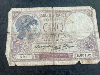 5-franc French banknote from 1940. $60Bakersfield, CA