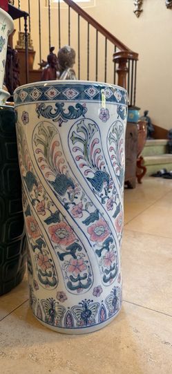 Antique Chinese Blue and White Porcelain Umbrella Holder with Floral Design$85San Diego, CA