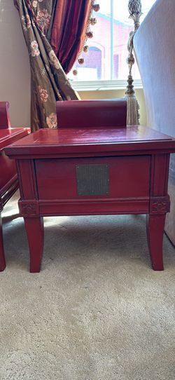 Vintage set Chinese Red Lacquer Side Tables- Carved Shou Frieze Square Macau$175San Diego, CA
