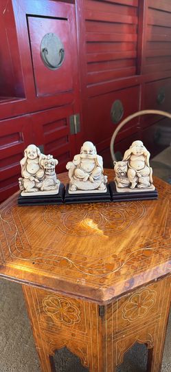 Tan Resin Set of 3 Buddha Statues Hear, See, Speak No Evil With Fu Dog Jaguar$50San Diego, CA