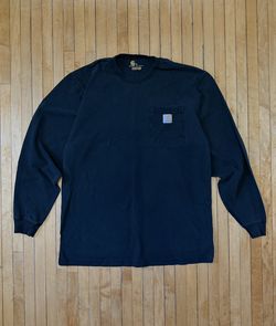 Y2K Carhartt Men's Faded Black Distressed Long Sleeve Chest Pocket Tee Sz. M$18Elgin, IL